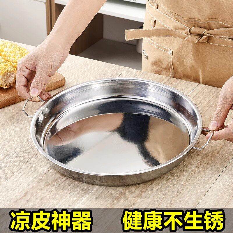 [304不锈钢的专用盘凉皮锣锣不粘锅肠粉专蒸盘圆形食品级圆盘平底]