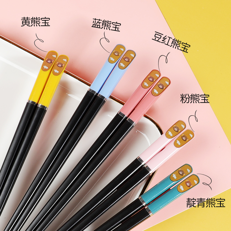 - Желтые розовые металлические портативные палочки для еды, с медвежатами