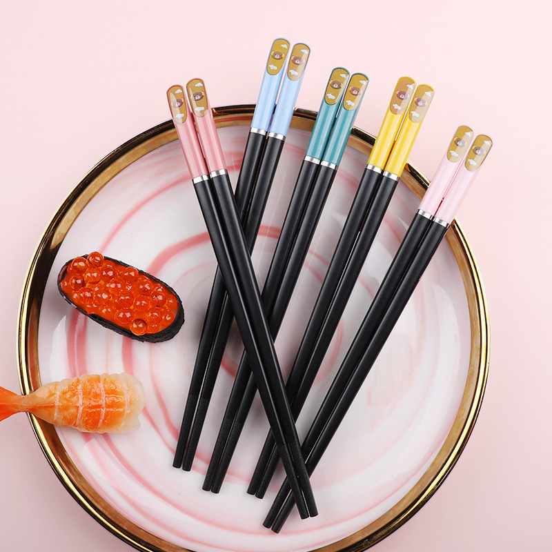 - Металлические портативные палочки для еды, с медвежатами
