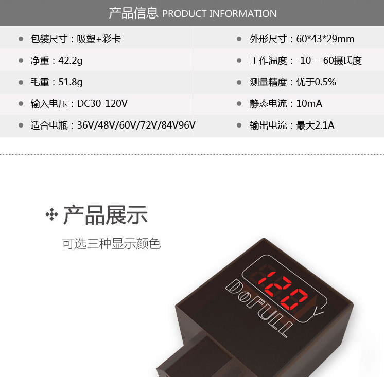 [1、输入电压范围扩展为30-200V,适用于36-120V的电瓶车。]