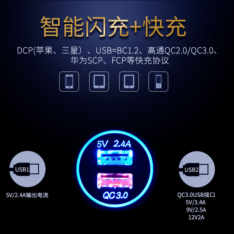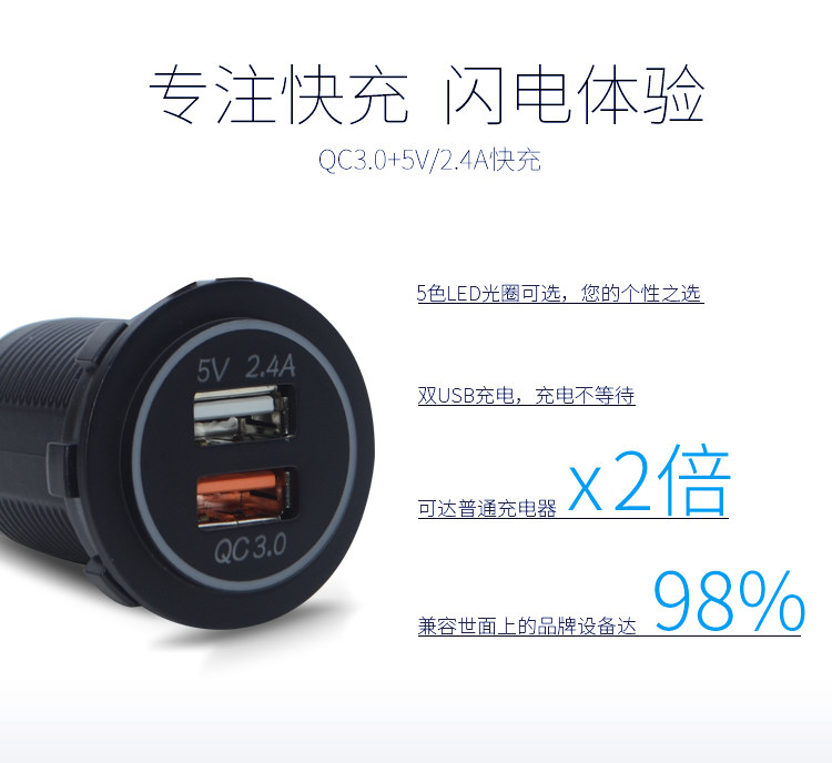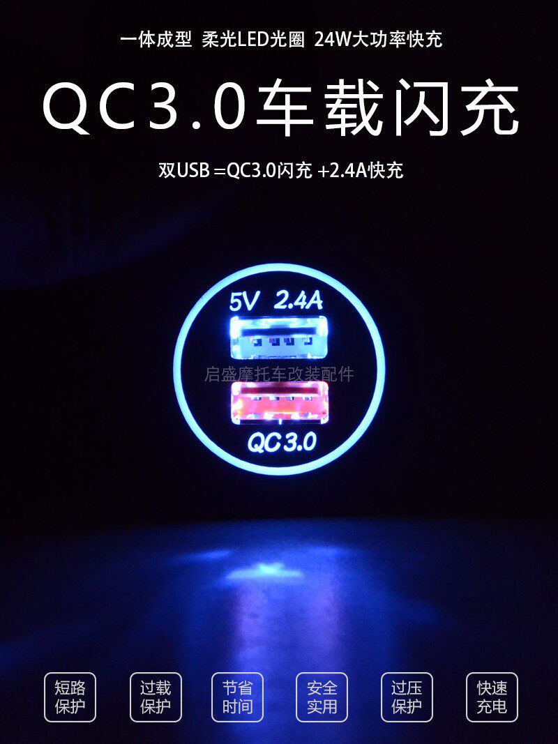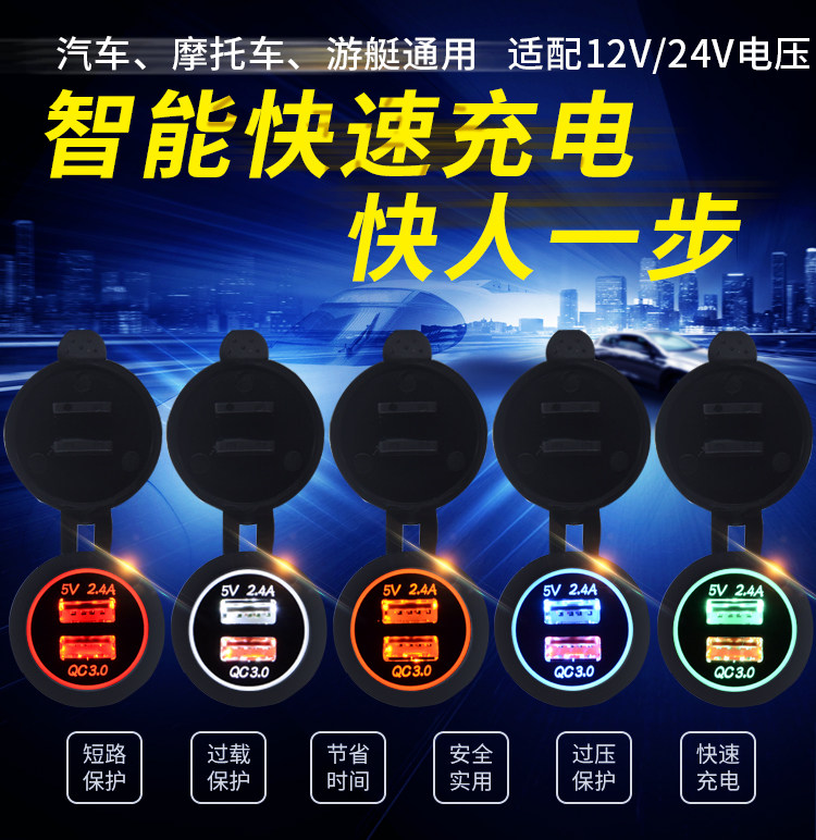 Зарядка мотоцикла для подножки мобильный телефон USB Carger Flash Зарядка автомобиль 12 В двойной порт быстрая зарядка QC3.0.