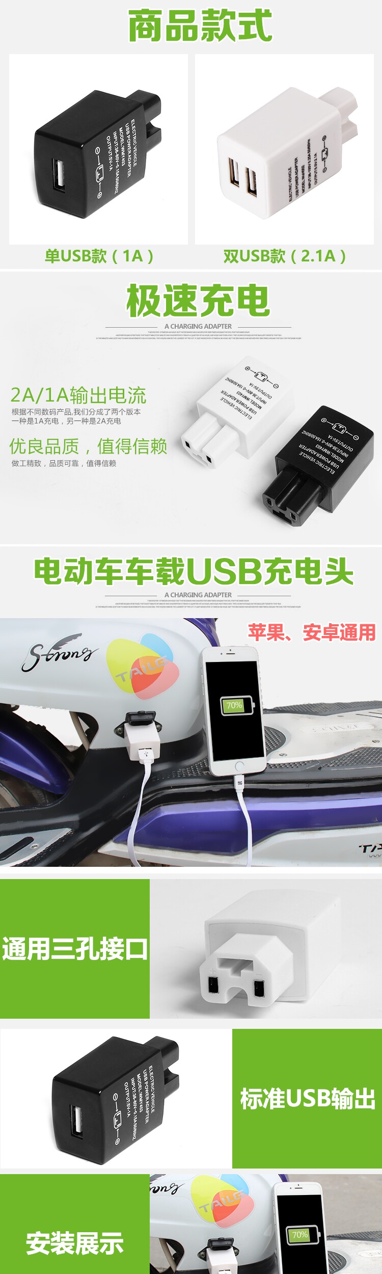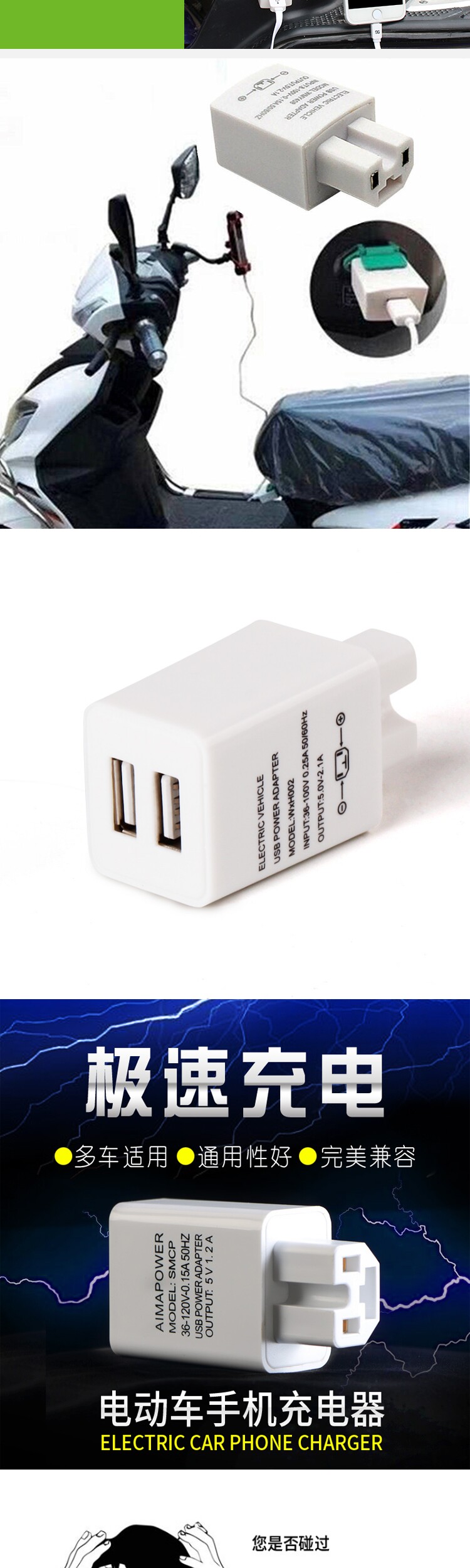 Электромобиль, держатель для телефона, зарядное устройство, модифицированные аксессуары, 36v, 48v, 60v, 72v