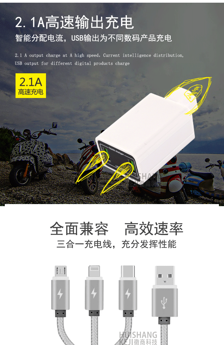 - 2.1A Fast Charge+Double -Port (с одной перетаскиванием и тремя линией) рекомендация