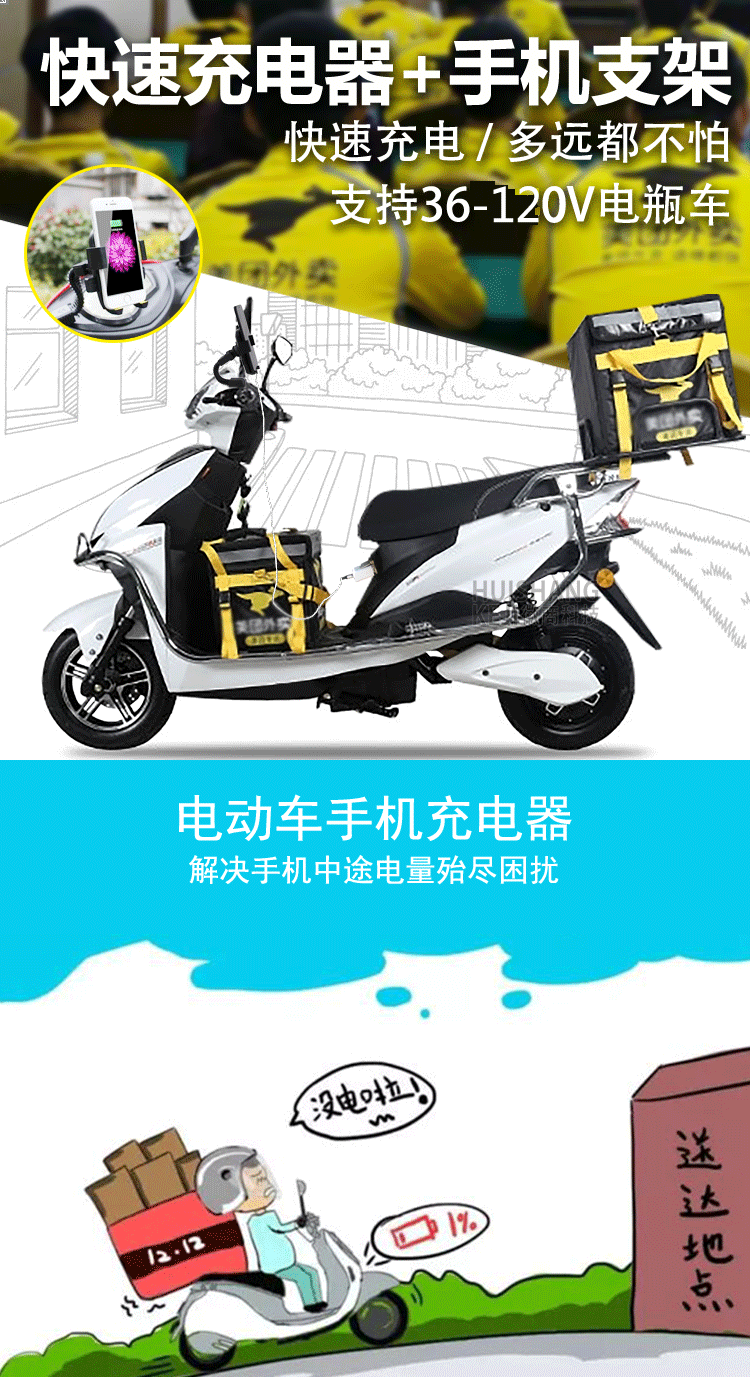 Электромобиль, держатель для телефона, универсальное зарядное устройство, 48v, 60v, 72v