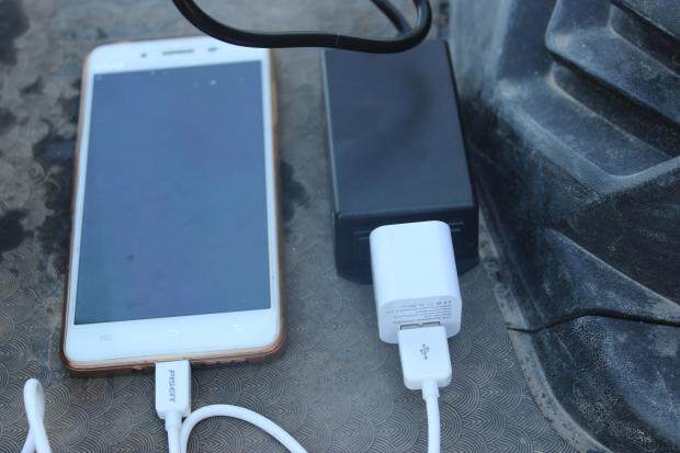 2. Поместите зарядное устройство для мобильного телефона на инвертор (например, зарядка телефона дома)