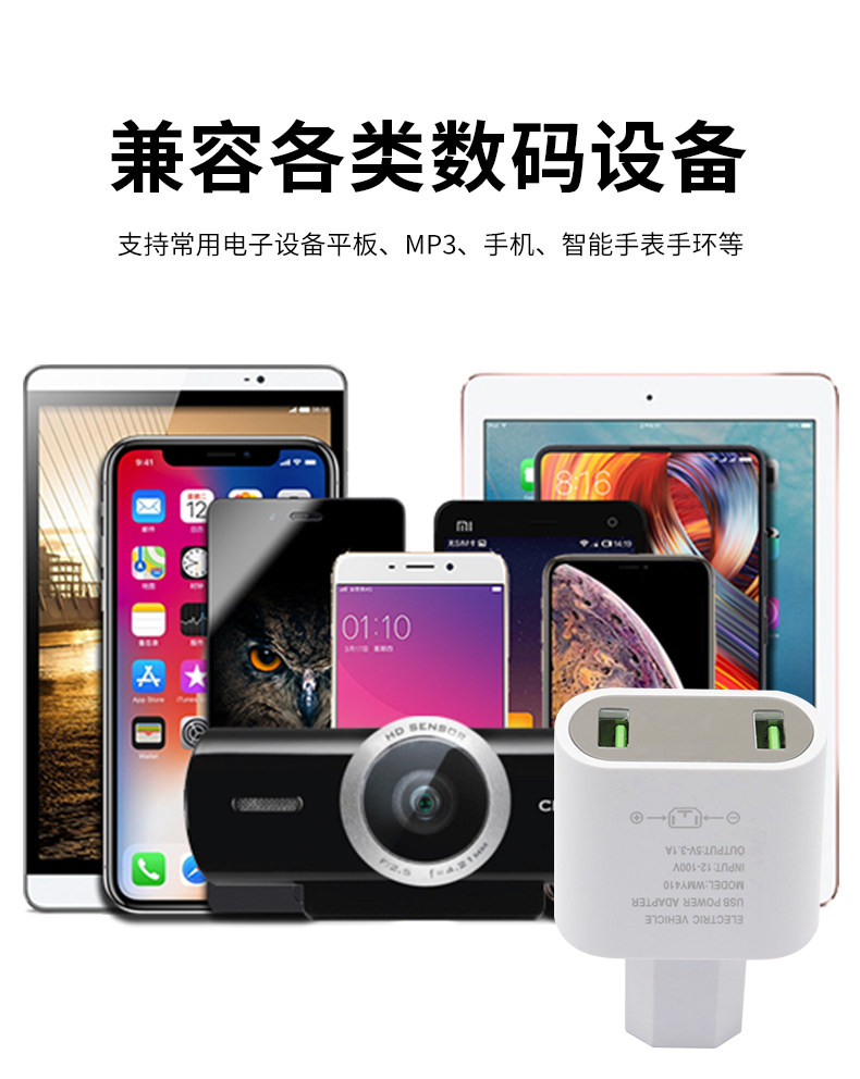 - Двойной USB -порт выходной диапазон полосы.