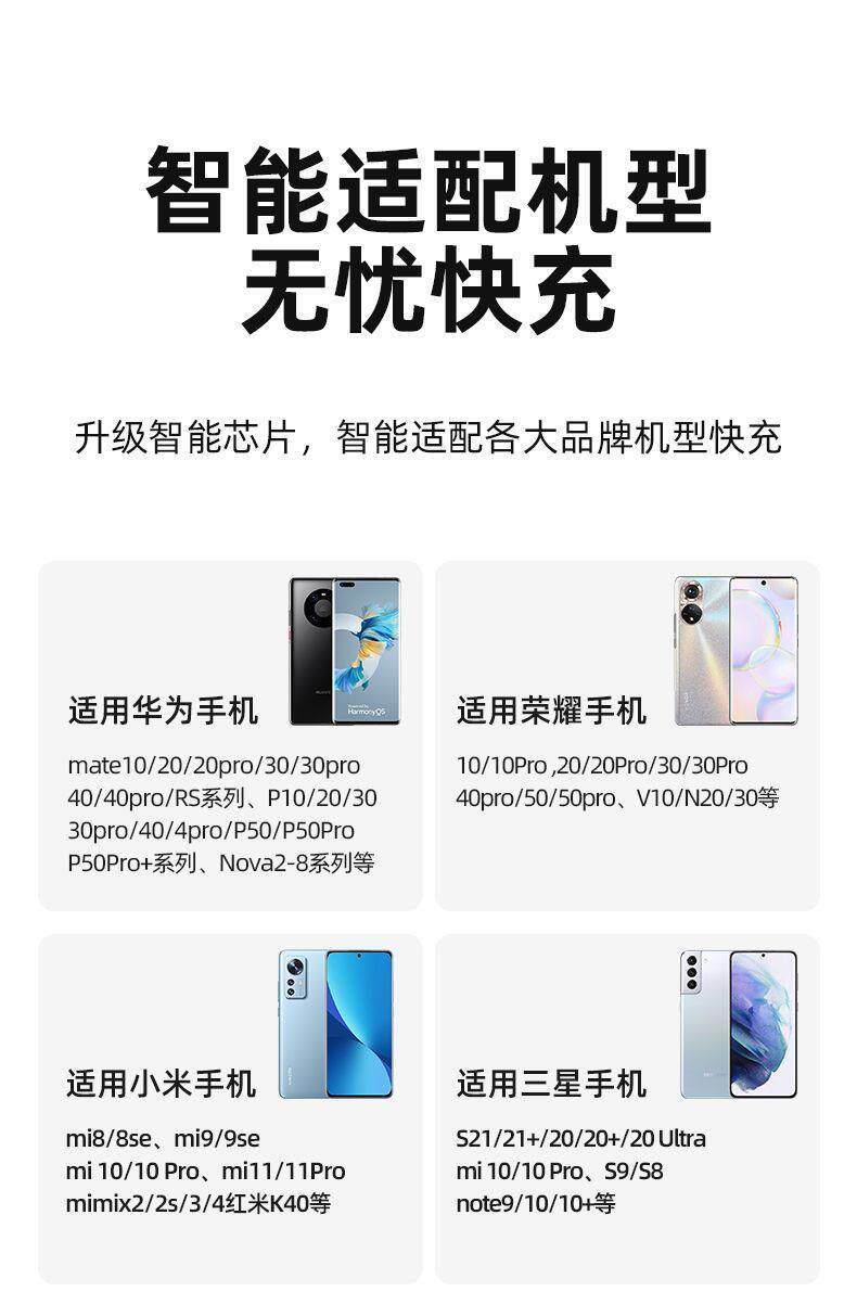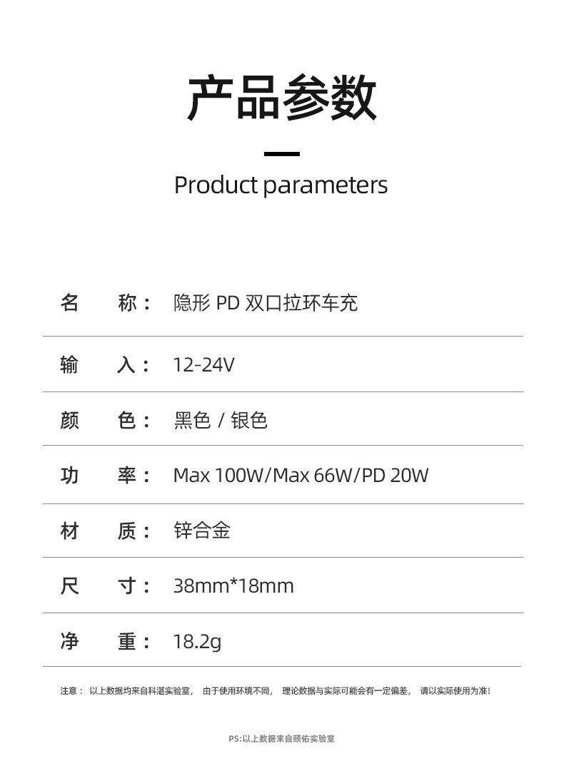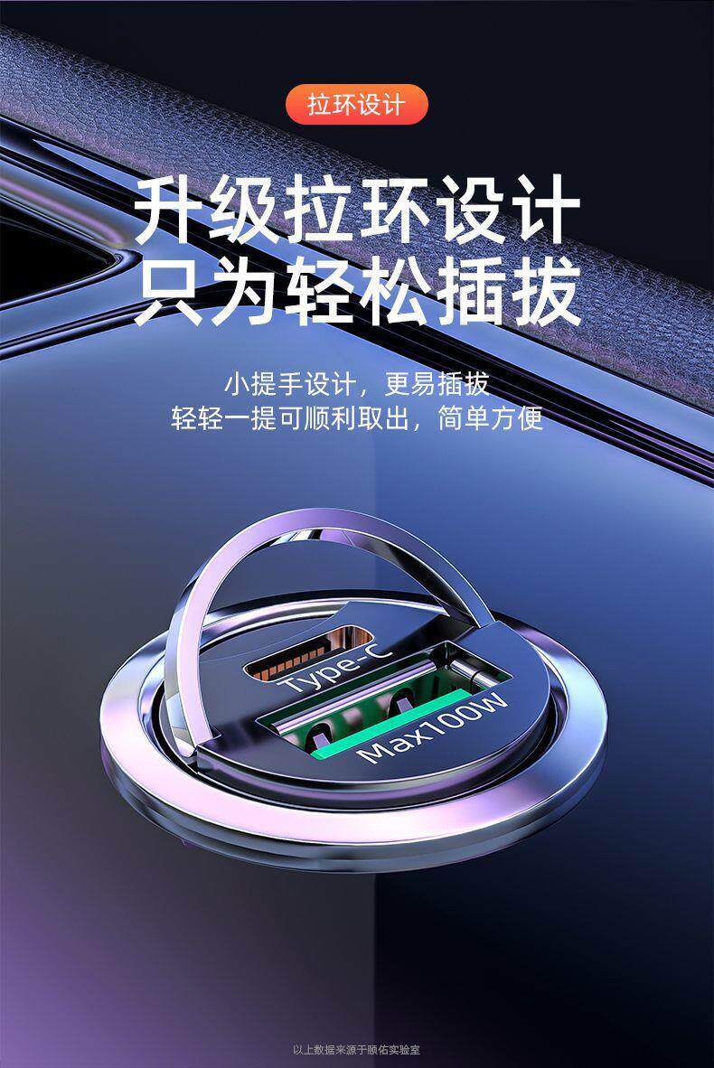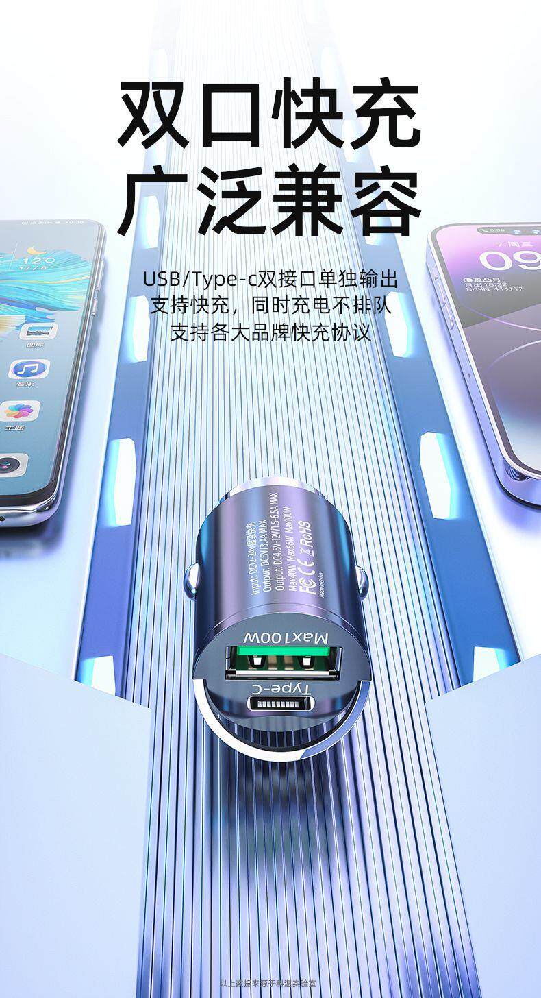 - [66 Вт № 6 Супер быстрая зарядка] Двойная USB не является невидимым и высококачественным телескопическим [Три -на одной линии быстрой зарядки] Black