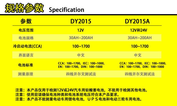 Тестер автомобильной батареи еще один Dy2015 Обнаружение батарея батарея батарея батарея внутренняя вода сжимание срок службы запуск анализа