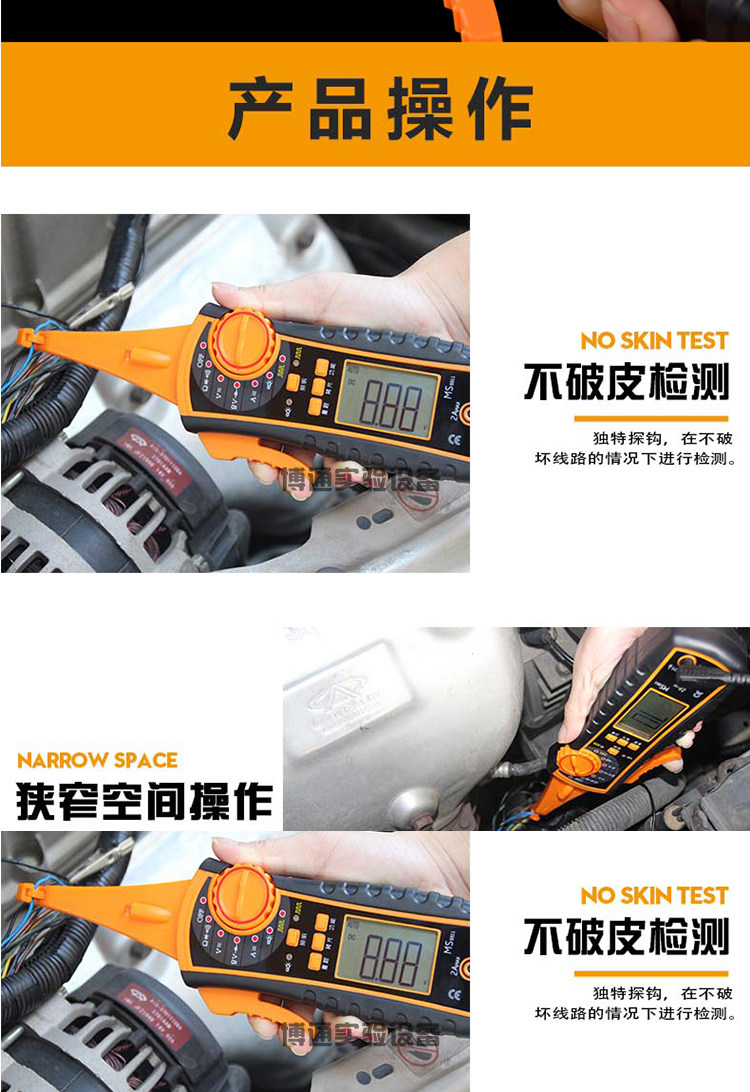 Тестер автомобильных цепей Jiaxun, авторемонтный мультиметр, автомобильная линия без разрыва с крючком и иглой, детектор световой линии