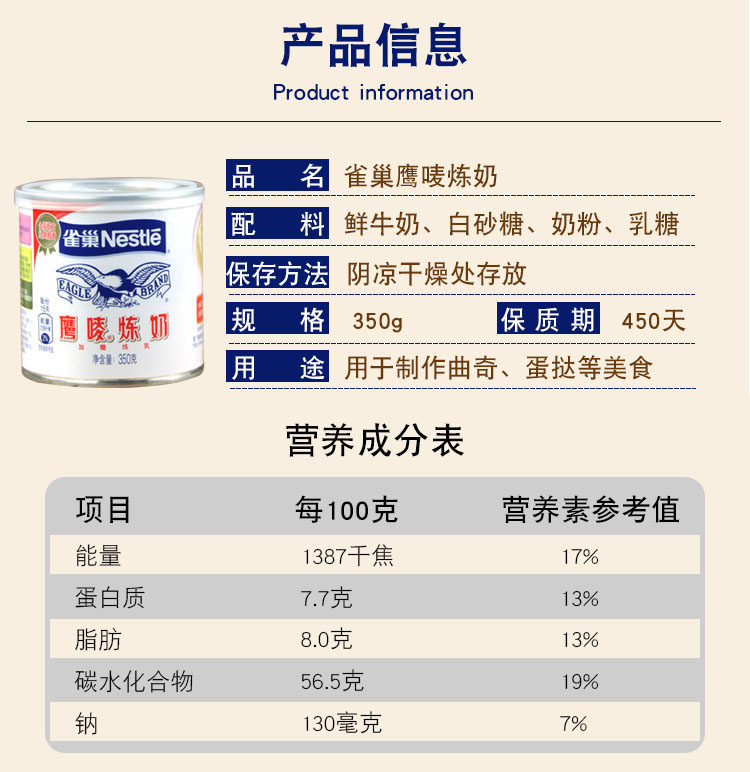 Nestlé Eagle Wicker Radined Milk 350 г яичковая линия кофейная десерт Разнообразное грудное молоко камеллия приправа хлеб
