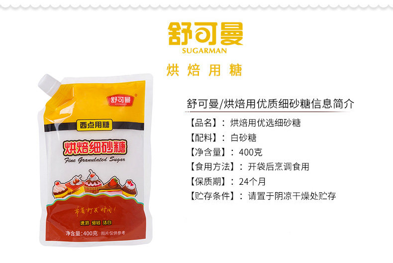 Schoeman высококачественный гранулированный сахарный сахар 400 г пирог бегканиум, помимо молодого сахарного хлопкового хлопка белый сахар, выпечка