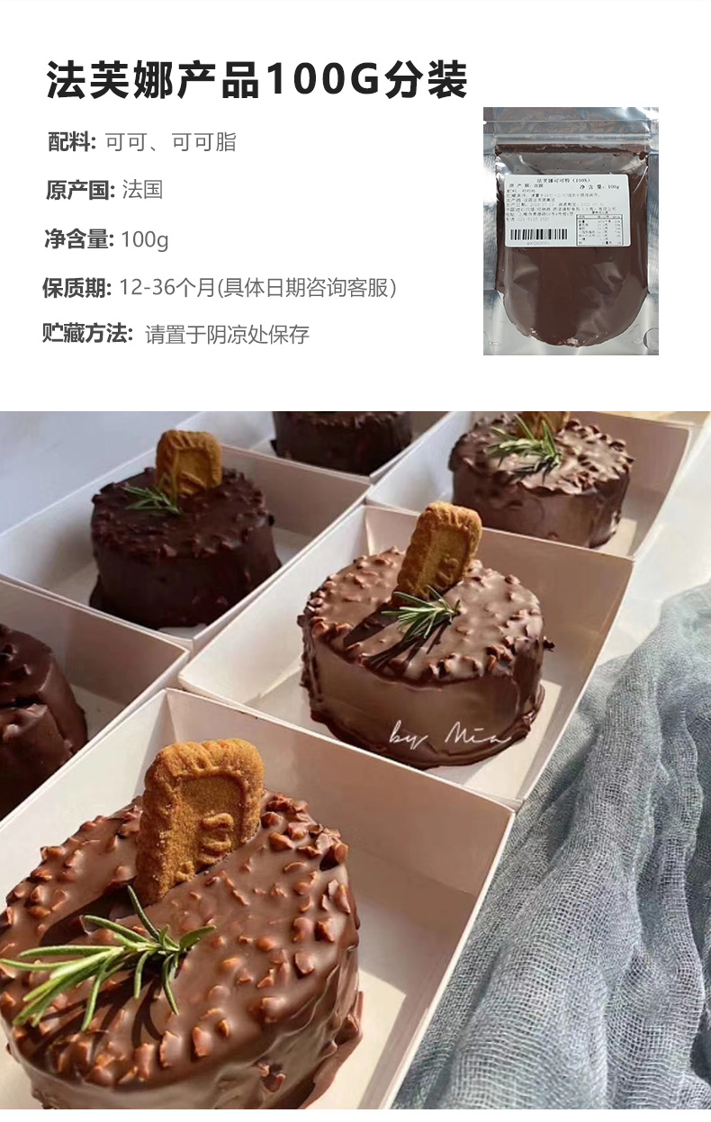 Faifana Chocolate 100g Французская влажность -Проятные черные гениальные белые гениальные торты на западном ролике Какао -порошок