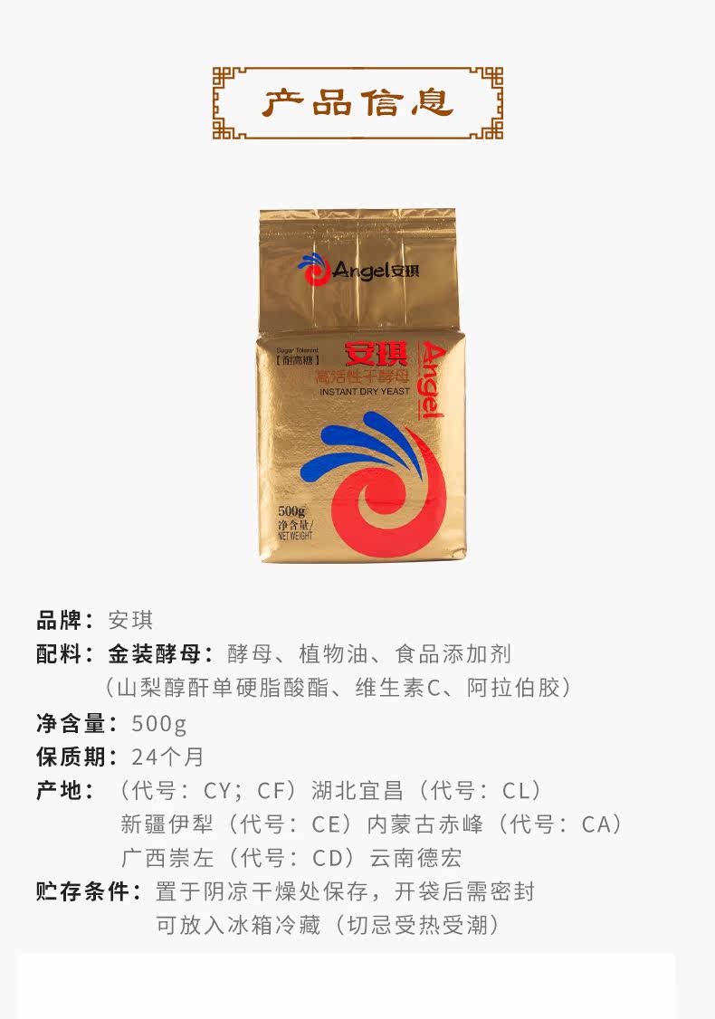 Anqi Gold Gold с высоким активированным с высоким содержанием глюкозы сухие дрожжи 500 г.