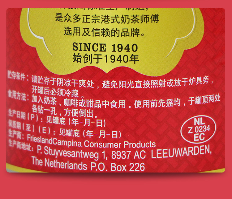 Голландский импортный черно -белый молоко 400G*6 банок все -фат все -фат для молочного пирога торт торт молочный чай магазин специальная выпекание