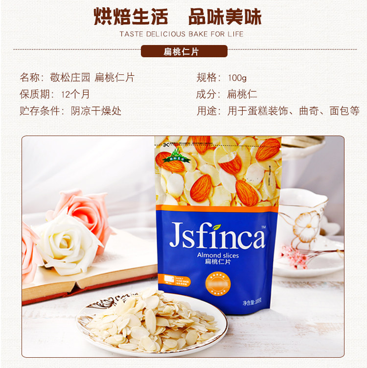 Выпечка сырья Jingsong усадьбы миндалина таблетки миндаля миндаль 100 г оригинальный хлебопечный печенье ингредиенты