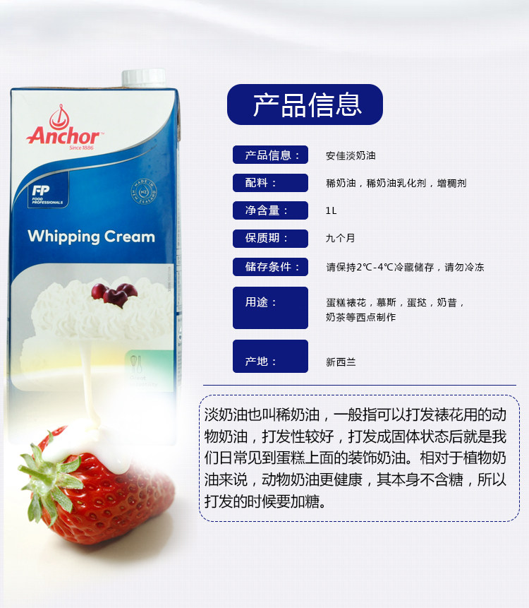 Anjia Fresh Cream 1L Bobleic Animal Cream