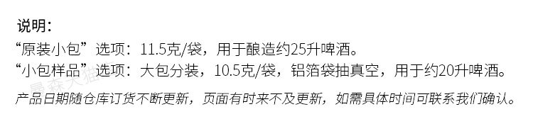 | Цвет: | [Оригинальная маленькая сумка] 11,5 г пивоварения 25 литров, [Маленькая сумка образец] 10,5 г пивоварения 20 литров |