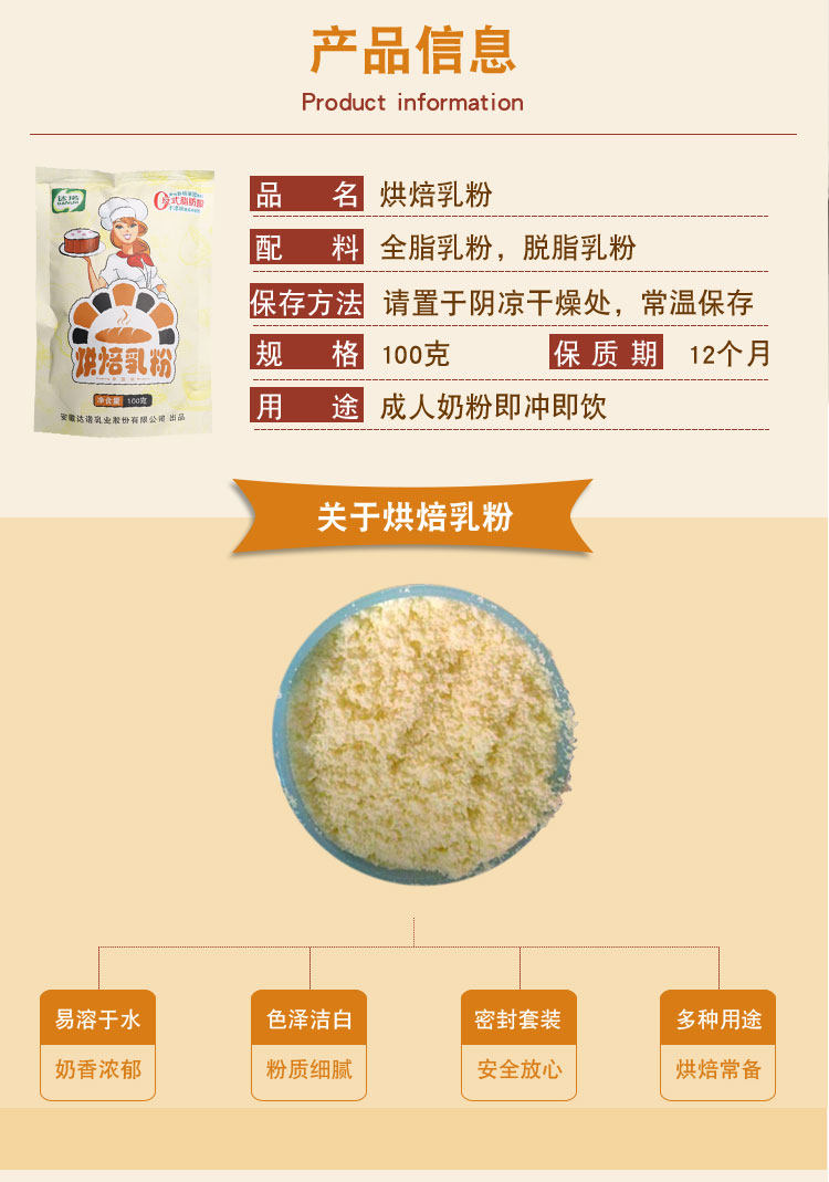 Дино выпекать молоко порошок 100 г полно -насыщенного молока порошок молоко порошок порошок коров