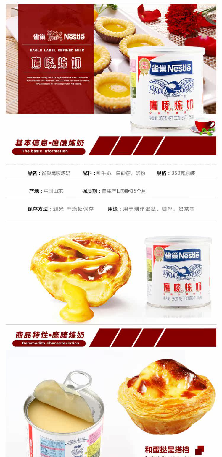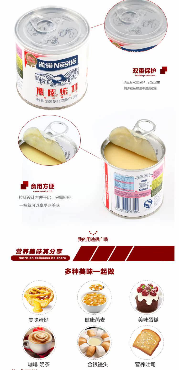 Nestle Nestle Eagle 炼 Рафинирование молока 350 г оригинальное десертное молочное чай для яйца выпечка сырья Рекомендация