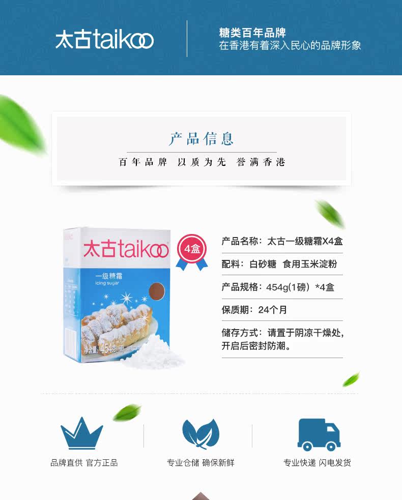 [99 Pre -Sale] Taikoo Taikoo First -Level Frost 454G*4 сахарная порошка мелкое сахарное выпечка пирога сырье