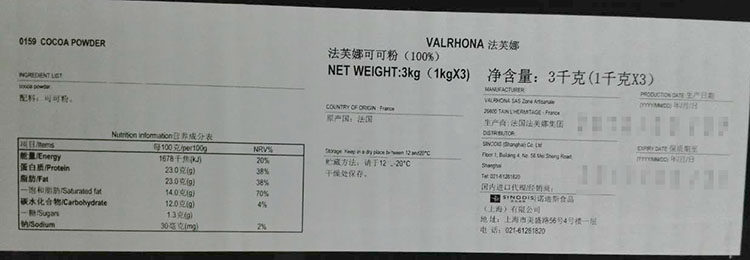 Франция импортировала какао -какао -какао -розовый сахар, чистый какао -порошок 1 кг тирамису, выпечка, ингредиенты