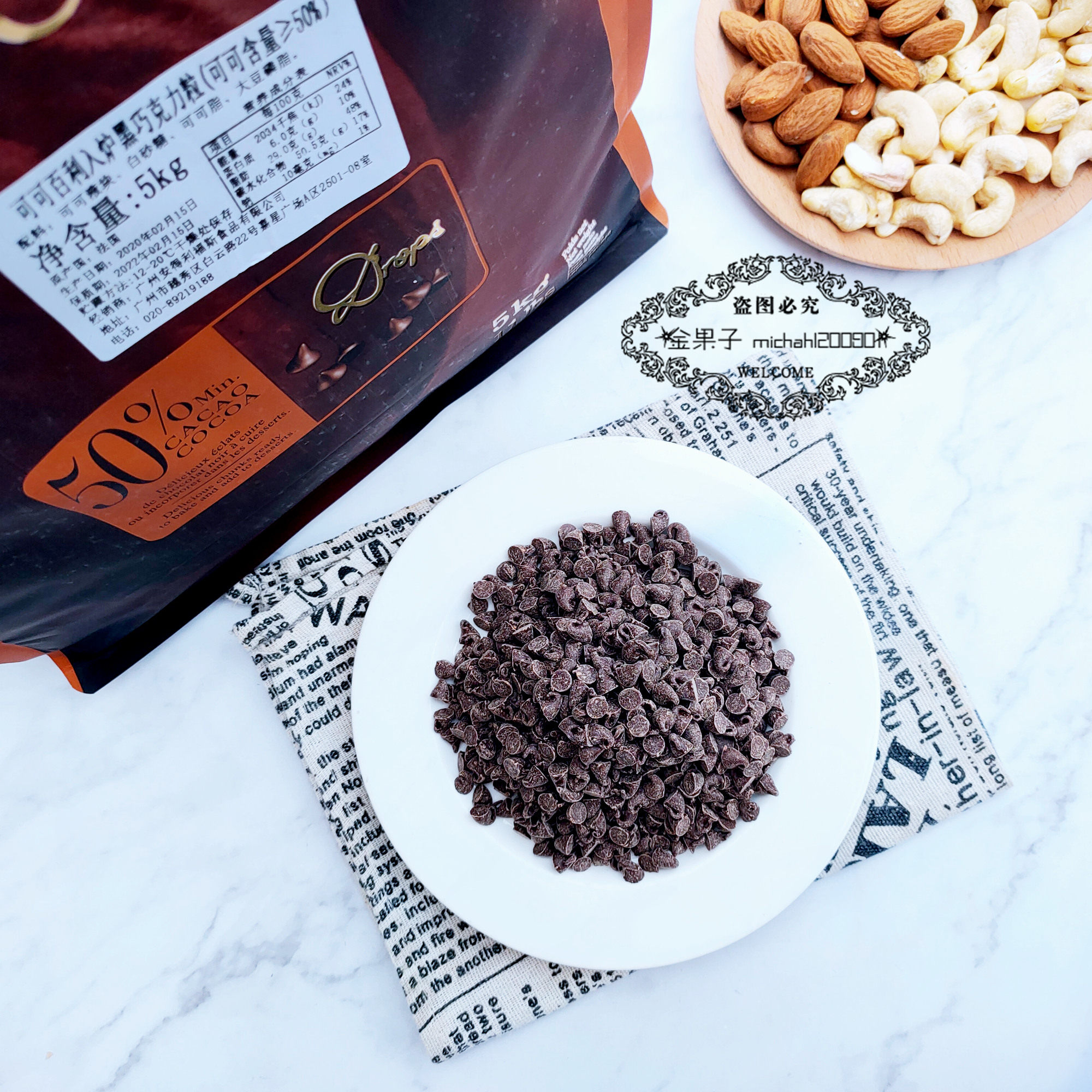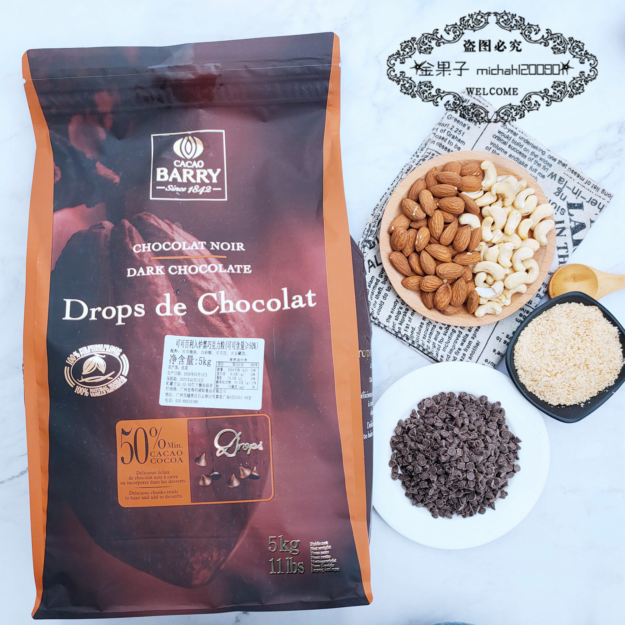 Гуандунская бесплатная доставка какао Bailei 50%Введите печь, чтобы противостоять высокопроизводительным шоколадным частицам 5 кг, импортированная пекарня пекарня