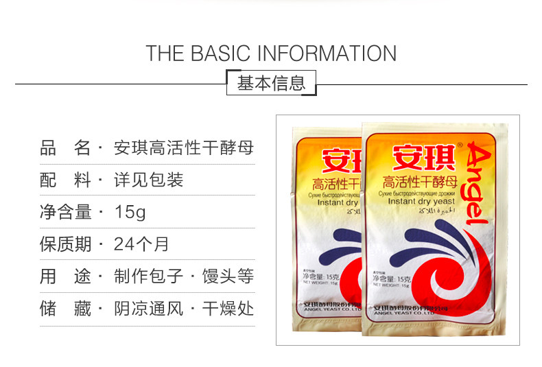 Анки дрожжевой порошок 15 г дрожжи высокого высокого уровня сухой дрожжевой булочки булочка булочка пиццерия ферментированные сырья материалы