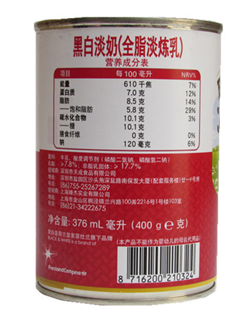 Бесплатная доставка Черно -белое молоко, черно -белое молоко 400G*5 банок голландского черно -белого молока и белые молочные чулки молоко ингредиенты чая