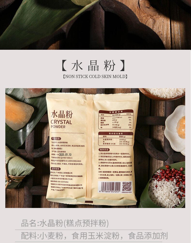青外 Кристаллическая кожа рисовая пельмени, предварительно смешанная порошка прозрачная ледяная кожа, лунный пирог, жареные звездные сырья для ледяных пельменов.