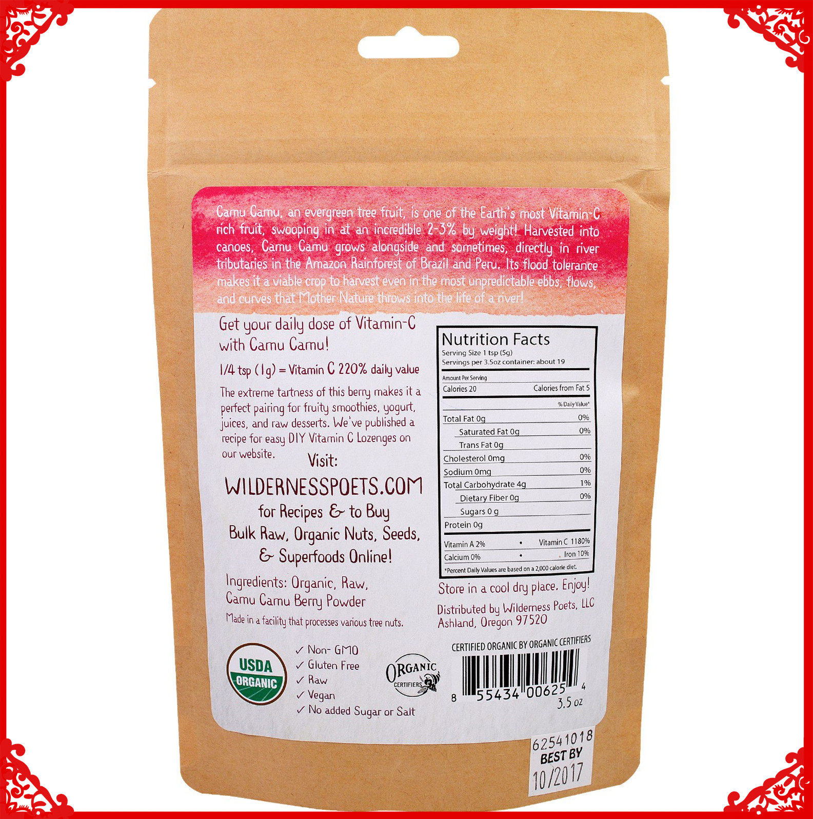 Pre -Sale of Wilderness Pots Camu Camu Peord Pring Prings содержит вентилятор витамин C