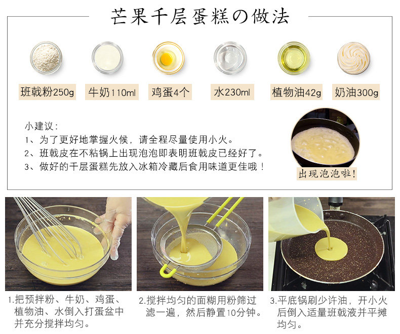 Банджи предварительно перемешанный порошок тысячи из тысячи -слоя изготовления пирога Материалы ручной домашнее манго -класс Алберд Алберды, тысячи слоев ингредиентов для выпечки кожи