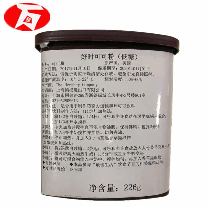 Hersheyscocoa/Хороший какао -порошок (низкий сахар) 226 г/Can Jiangsu, Zhejiang, Shanghai и Anhui 2 могут бесплатно отправить доставку