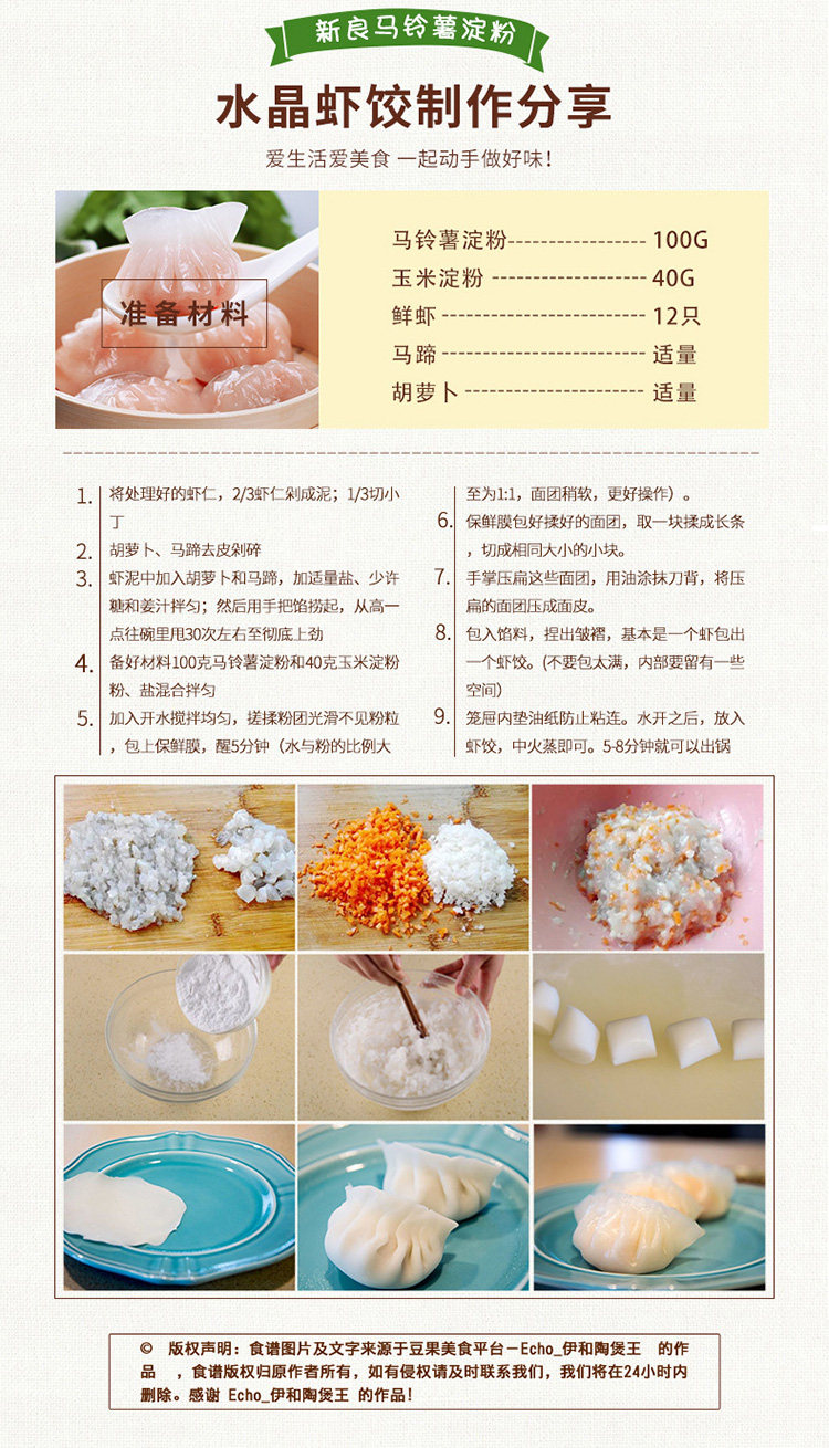 新良 Картофельный крахмал потребляет муку картофель муки сырая мука и кристаллические креветки, ингредиенты 200 г