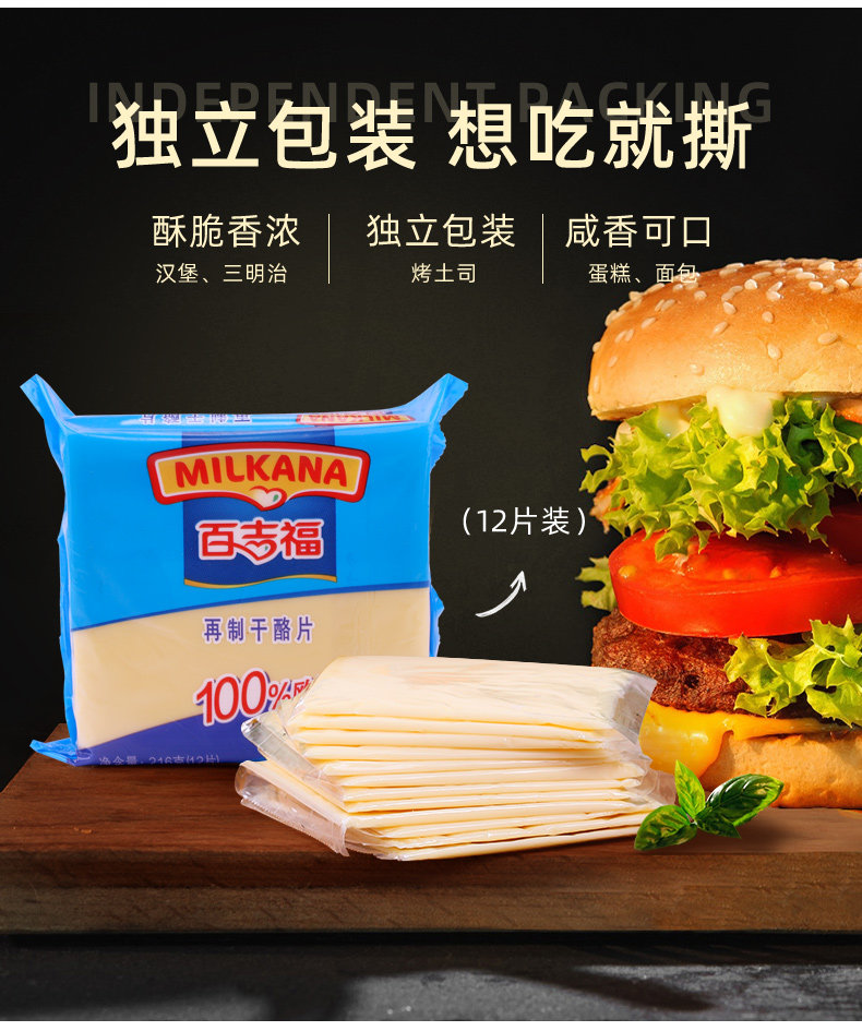 Ломтики сыра Байцзифу, 12 ломтиков, материал для гамбургеров, ломтики сыра, сырный блок, домашняя запеченная сырная палочка, специальный сэндвич
