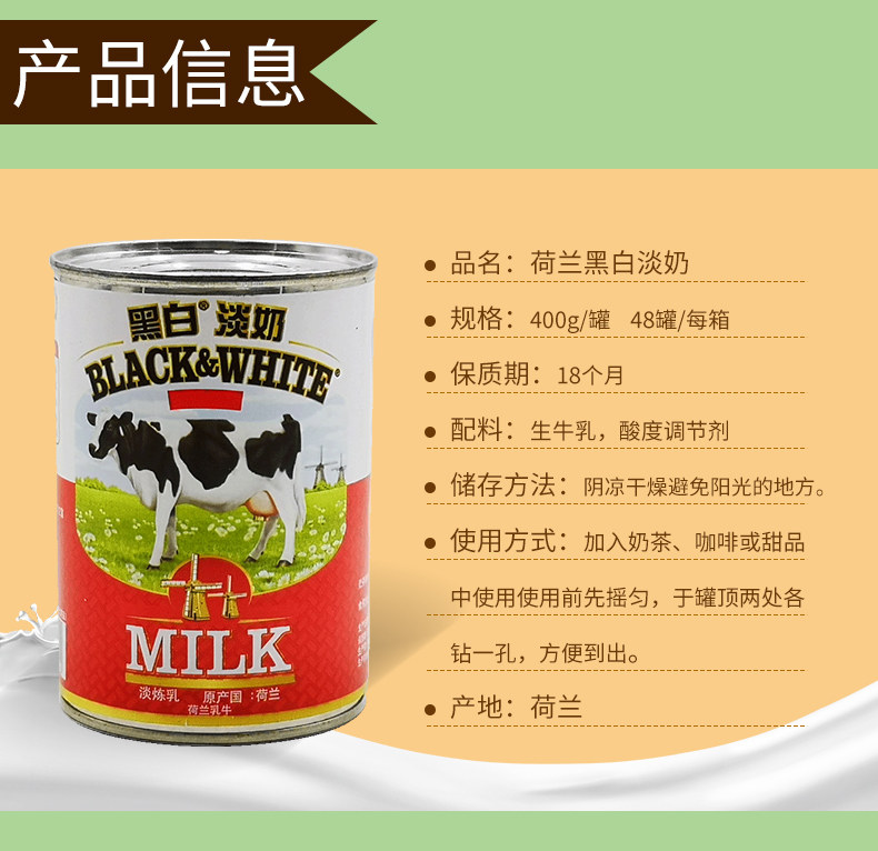 Черно -белое свежее молоко полное коробка 400 г*48 банок хонгконгских чулок в стиле молока.