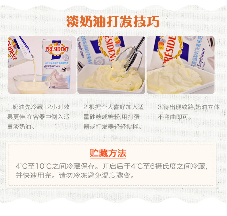Свежие сливки можно хранить только в холодильнике, не заморозите.После Кайфэна, пожалуйста, используйте его в течение 3 дней.