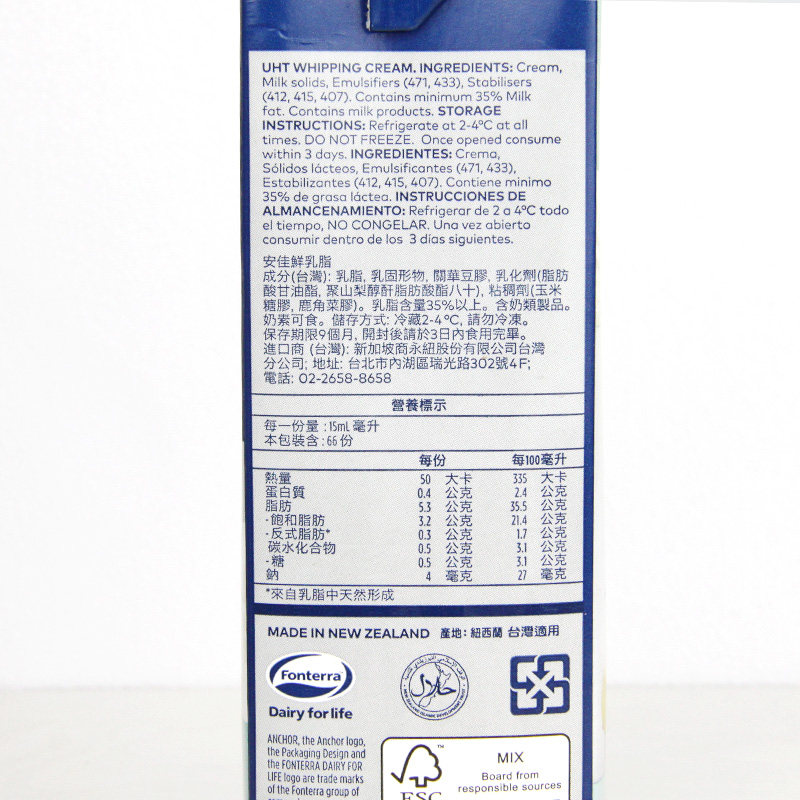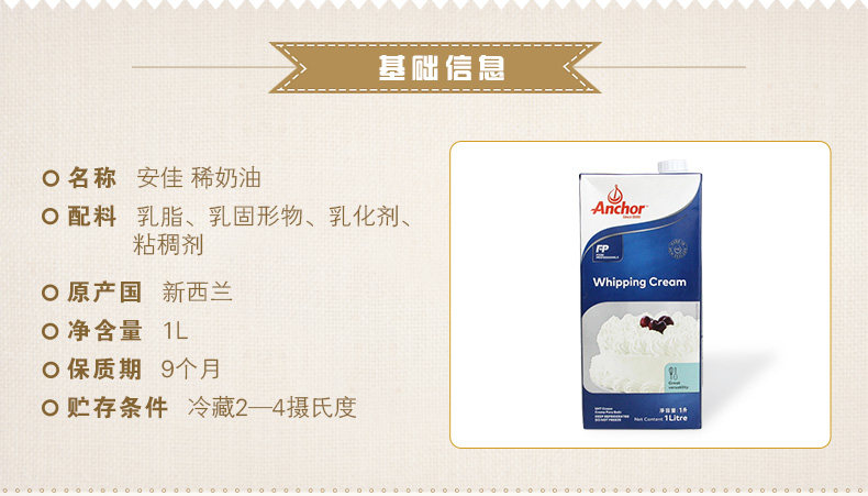 Anjia Fresh Cream 1L Ban Ban Ban Cream Core