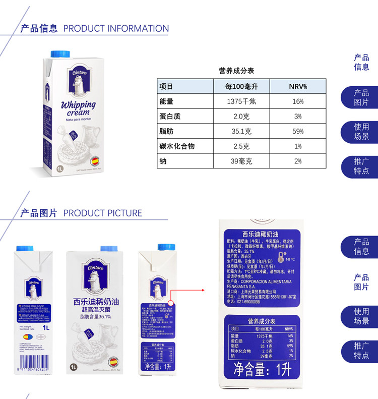 Свежие кремы Xiledi 1L Импортированный животный крем -крема для выпечки