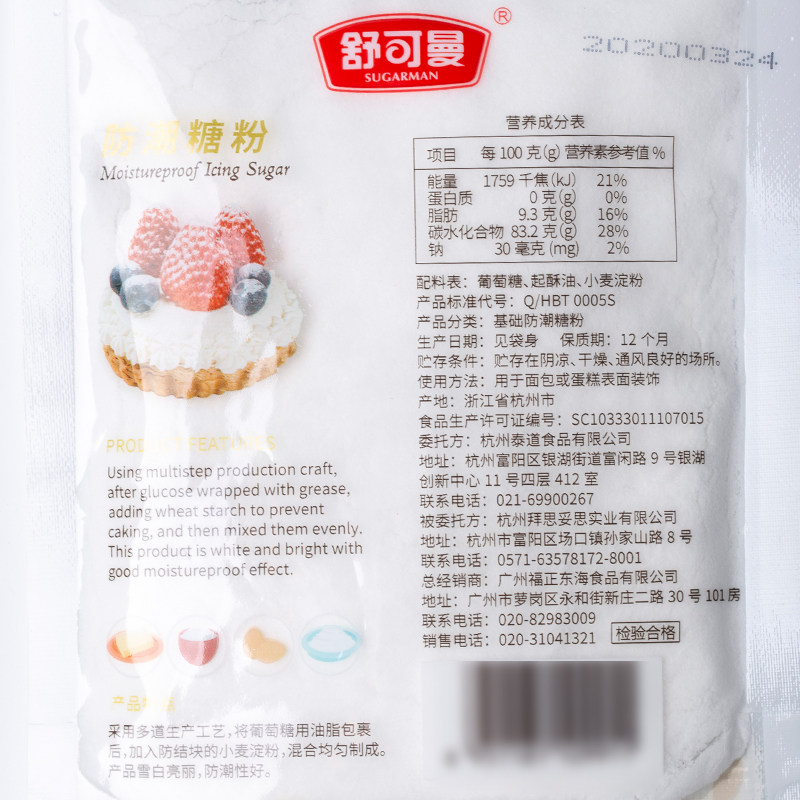 Schoeman Moisture -Проницаемый сахарный порошок 100 г заморозить мелкие сахарные порошок хлебопец