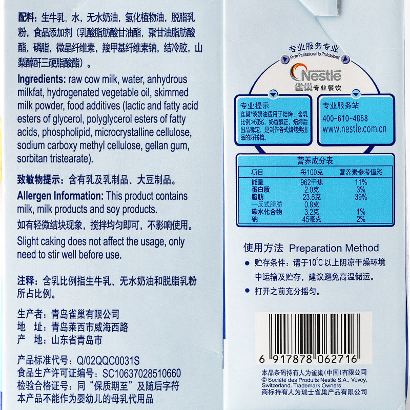 Nestlé Fresh Cream 1L подходит для выпечки запеченного свежего крема для животных запеченных яичных яичных яиц ингредиенты торта