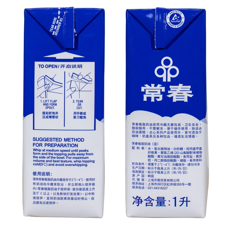 Чанчун взбитые сливки синяя коробка 1 л жидкие сливки импортированные жиры, посадные жиры взбитые сливки