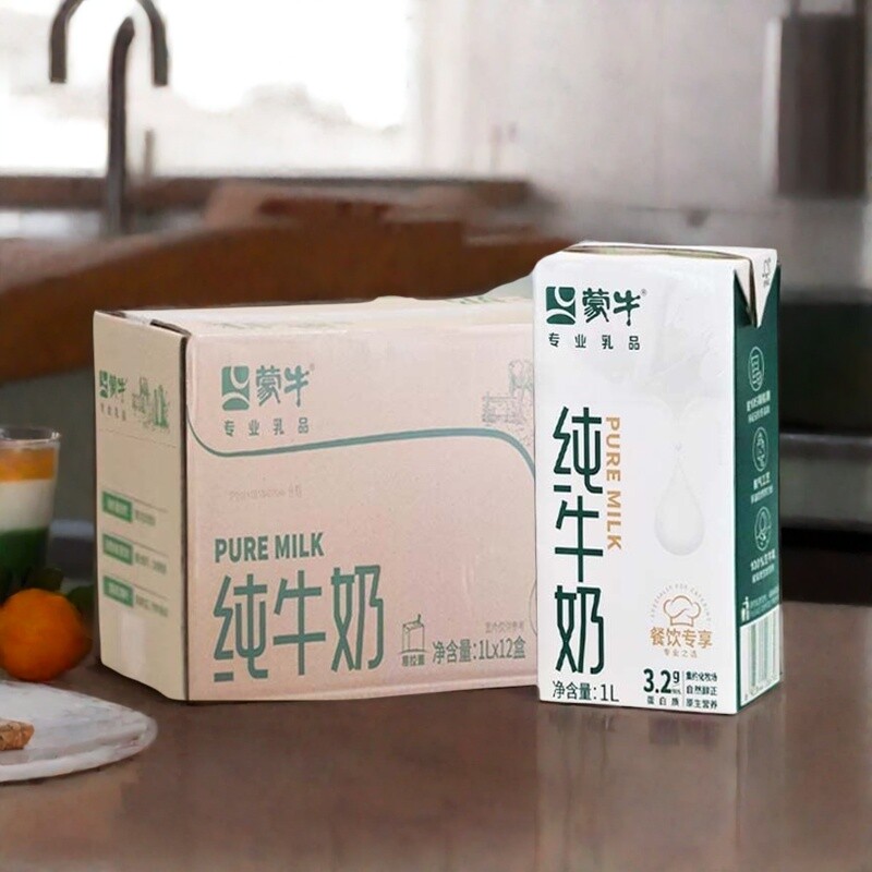 蒙牛 Полная коробка чистого молока 1 л * 12 коробок упаковки для общественного питания, питательное молоко, кофе, молоко для завтрака, коммерческое сырье для выпечки