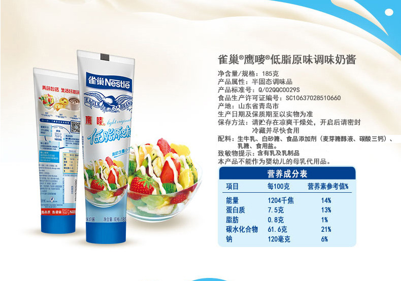 Крем Nestlé Eagle Groud 185G*2 Storlon Coffee Coffee Tea Tea Dessert Dessert Nutrition Delicious Low -Fat Original