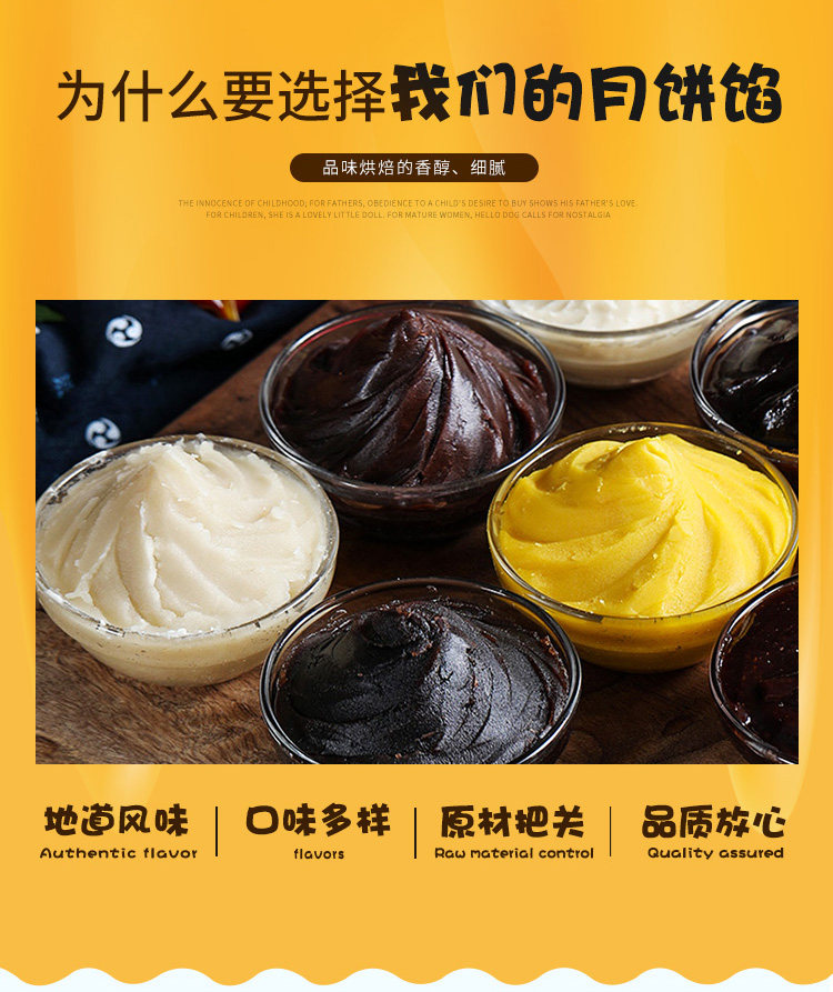 Паста из белого лотоса Суван, паста из красной фасоли, паста таро, фиолетовый картофель, сыр из черного кунжута, начинка из финиковой пасты, начинка для хрустящего лунного пирога из яичного желтка 5 кг