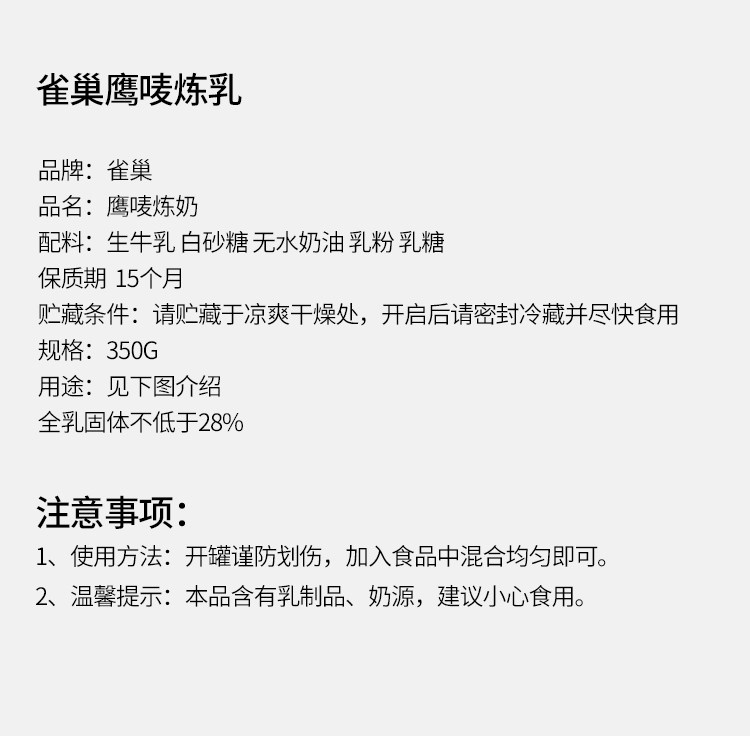 Рафинирование молока Nestle Eagle 奶 Рафинирование молока Небольшая упаковка сделайте выпечку для выпечки с молоком яйцо пирог с пирог с хлебом 350 г