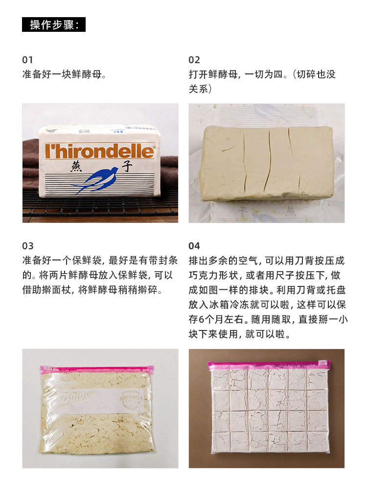 Глотать свежие дрожжи 500G*20 кусочков высокого уровня с высоким уровнем высокого высокого уровня, хлеб с пиццей, ферментированные разрыхлитель