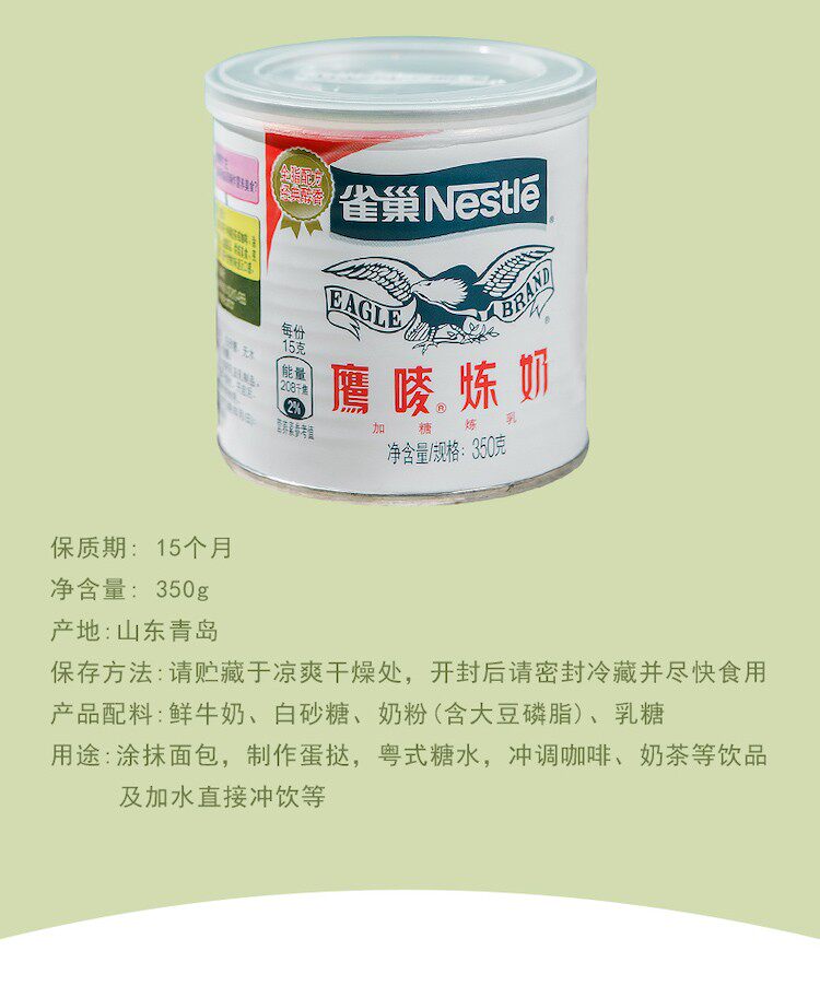| Цвет: | Nestle Eagle Mark Condensed Milk 350G*1 банка, Nestlé Eagle 唛 Рафинирование молока 350G*2 банка |