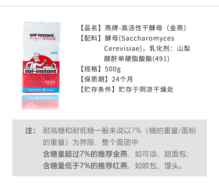 Ласточка высокая -Active Dry Drogs 500g Большая упаковка французский Le Sofei Blowll Brand Golden Wallow Hread мука мука