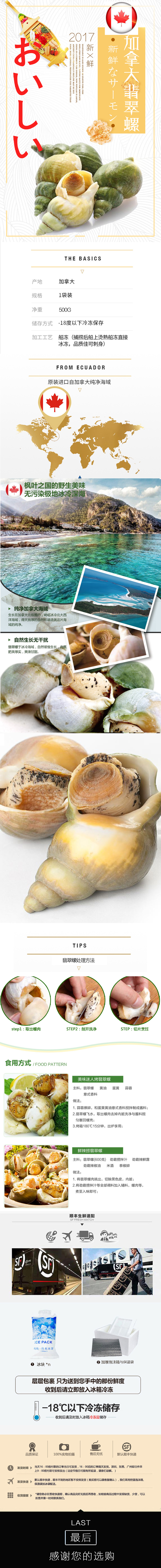 膳鲜记 Канадская Изумрудная улитка Класс Класс Приготовлен замороженные замороженные и свежие замороженные 500G