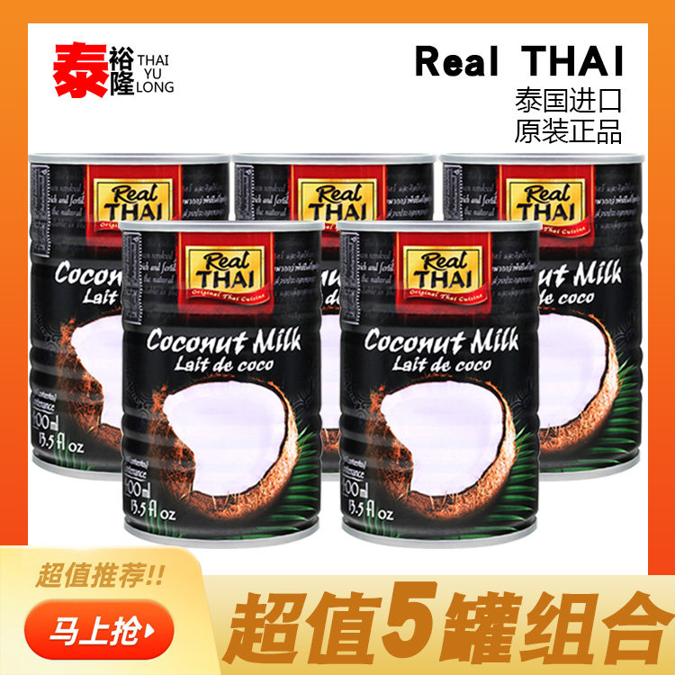 Lyr Taeong Coconut Milk 400 мл*5 банок импортируется высокая концентрация высокой концентрации легкой -к банкам кокосового молока Кокосовое сок кокосовый молоко